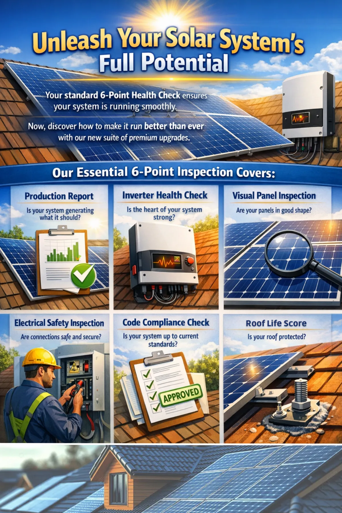 Don’t wait for a problem—schedule your 6-Point Electric Solar Inspection today and keep your system performing like new!